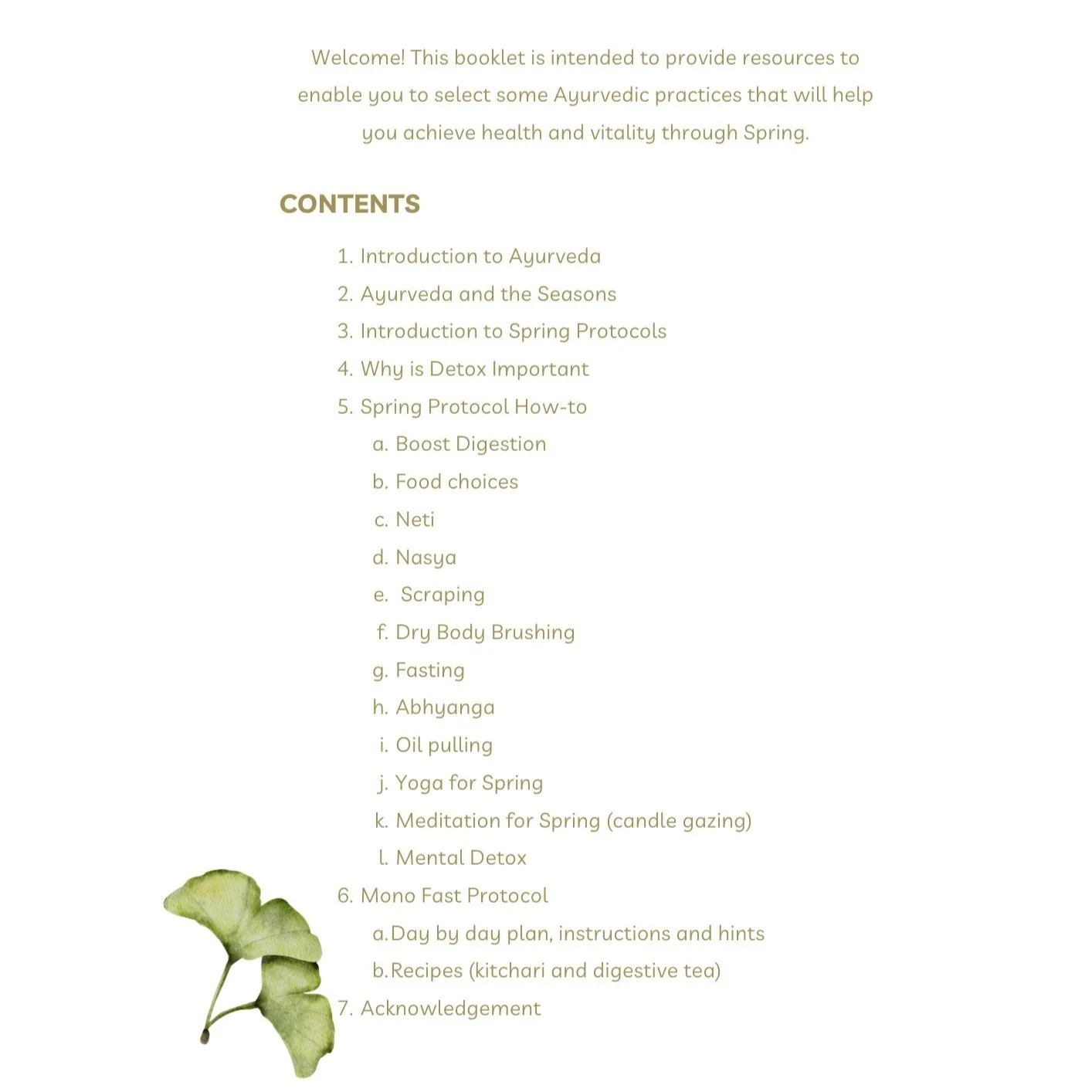 Please find enclosed a 34 - page e-book outline what, why and (most importantly) how to Detox the Ayurvedic way.